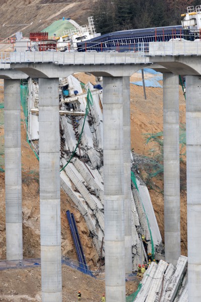 교량은 100m 높이에서 슬라브 상판이 붕괴되면서 추락한 것으로 확인됐다. 이 사고로 10명이 매몰된 것으로 추정된다.
