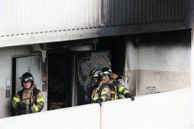 이 아파트에서는 전날 오전 8시 17분 4층 두 집에서 화재가 발생해 A씨가 사망하고 6명이 부상을 입었다. 이 중 2명은 전신 화상을 입고 4층에서 추락해 인근 병원에서 치료 중이다.
