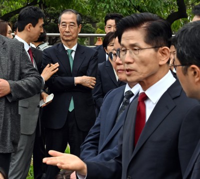 앞서 국민의힘은 이날 새벽 김 후보에 대한 대선후보 자격을 취소했다. 이어 당원을 대상으로 국민의힘에 입당한 한덕수 후보를 대선후보로 변경 지명하는 투표를 진행했다.