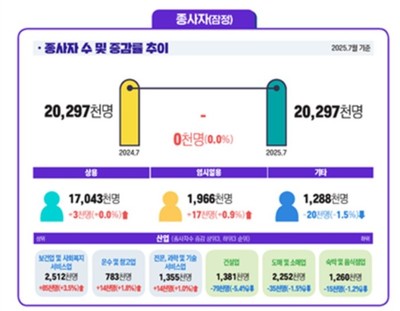 산업별 종사자 증가 폭은 보건업 및 사회복지 서비스업이 5만9000명(3.7%)으로 가장 컸다. 운수 및 창고업(1만4000명, 1.8%), 부동산업(1만3000명, 2.9%)에서도 크게 늘었다.