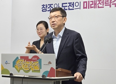 최민호 시장은 13일 시청 정음실에서 언론브리핑을 통해 최근 열린 세종한글축제와 한글 국제 프레 비엔날레 성과를 발표했다.