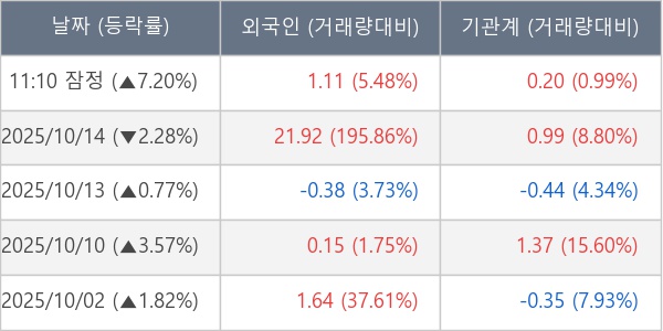 [표] 외국인ㆍ기관 순매매량 (단위 만주)