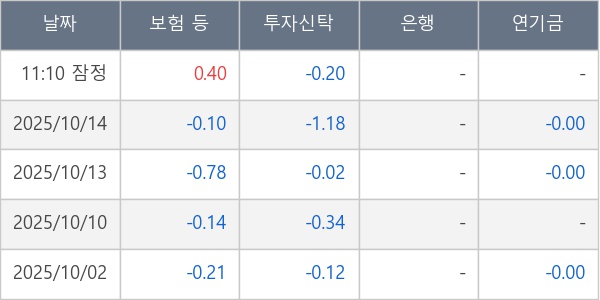 ※ 장중 매매동향은 잠정치이므로 실제 매매동향과 차이가 발생할수 있음
