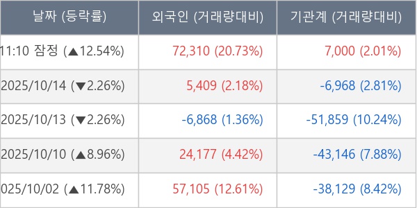 [장중수급포착] 큐리언트, 외국인/기관 동시 순매수… 주가 +12.54%