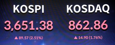 [서울=뉴스핌] 송기욱 기자 = 코스피가 3거래일 만에 3600선을 탈환, 3650선까지 올라서며 사상 최고치를 재차 경신했다.