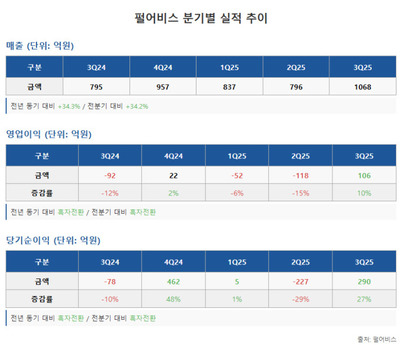 펄어비스는 올해 3분기 매출 1068억원, 영업이익 106억원, 순이익 290억원을 기록하며 흑자전환했다. 상반기보다 마케팅비가 증가했음에도 주요 신작 붉은사막의 프리오더 개시, 트리플A 타이틀 수준의 예약 반응, 기존 검은사막 IP의 분기 사상 최고 매출이 실적 개선을 뒷받침했다.
