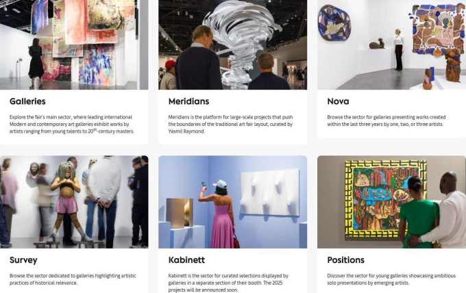 | [서울=뉴스핌]이영란 미술전문기자= 2025아트바젤 마이애미비치는 메인 섹터인 갤러리즈를 필두로 노바, 포지션, 서베이, 메르디언스, 카비넷까지 다양한 섹터가 펼쳐진다. [이미지=아트바젤 웹사이트] 2025.11.27 art29@newspim.com |