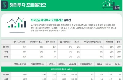 퇴직연금 포트폴리오의 11월 월간 수익률을 보면 20~30대용이 1.7%(이하 소수점 둘째 자리 반올림), 40대용이 1.5%, 50대용이 1.1%를 기록했다. 10월에는 수익률이 각 6.0%, 5.0%, 3.3%였다.