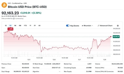 [서울=뉴스핌] 고인원 기자= 비트코인 가격이 9일 9만달러 초반에서 횡보하며 약세 흐름을 이어갔다. 미 연방준비제도(Fed)가 이번 주 기준금리를 0.25%포인트 인하할 것으로 시장은 거의 확신하지만, 2026년까지의 추가 완화 경로가 불투명해지면서 투자심리가 위축된 모습이다.