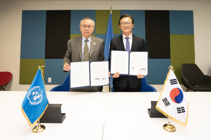 | 전재수 해양수산부 장관(오른쪽)이 9일(현지시간) UN본부에서 UN해양총회를 담당하는 UN경제사회국(DESA)과 '제4차 UN해양총회'의 성공적인 개최를 위한 양해각서(MOU)를 체결하고 기념사진을 찍고 있다. [사진=해양수산부] 2025.12.10 dream@newspim.com |
