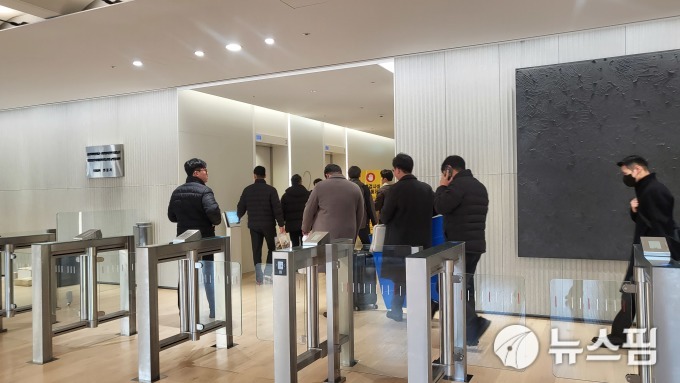 | 경찰에 따르면 경찰청 특별전담수사팀은 경기도 가평에 있는 통일교 천정궁 등 10개소에 대해 수사관을 보내 압수수색영장을 집행하고 있다. 사진은 서울 광화문 김건희 특검 사무실에서 경찰이 압수수색 집행하기 위해 대기하고 있는 모습. [사진= 김영은 기자] |
