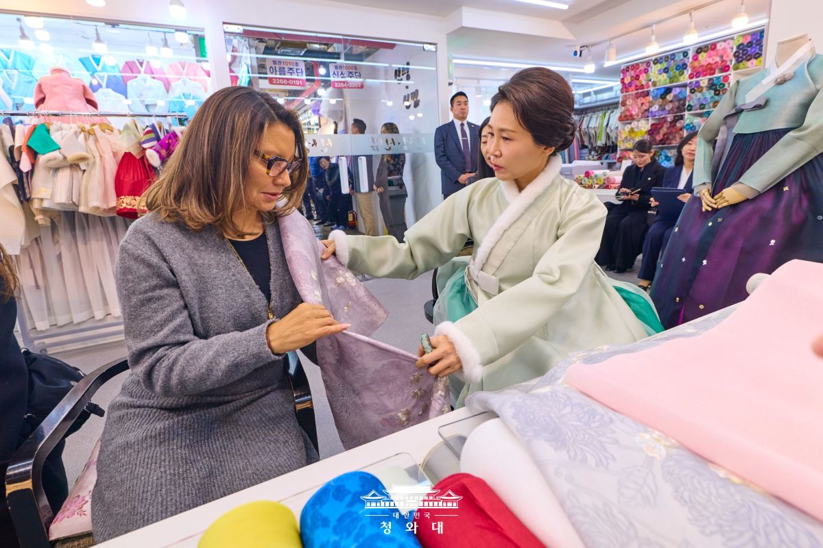 두 여사는 이날 서울 종로구 광장시장도 함께 방문했다. 해당 일정은 한국 전통 의복인 한복의 아름다움을 공유하고 양국 영부인 간의 우의를 다지기 위해 마련됐다.