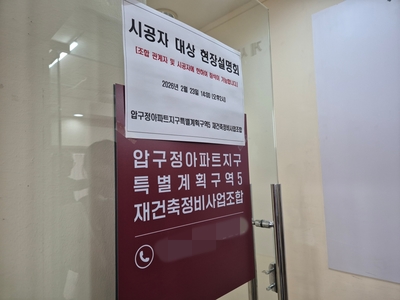 4일 정비업계에 따르면 서울시는 전일 압구정5구역 재건축 조합에 건설사별 개별 홍보가 불가하다는 내용의 공문을 발송했다. 향후 시공사 선정을 위한 홍보관은 건설사 합동으로 운영될 예정이다.