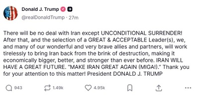 [뉴욕=뉴스핌]김근철 특파원=도널드 트럼프 미국 대통령은 미국과 이스라엘의 공습 이후 이란 지도부가 사실상 무력화되었다며, 미국과 이스라엘을 잘 대하는 새로운 지도자가 필요하다고 밝혔다.