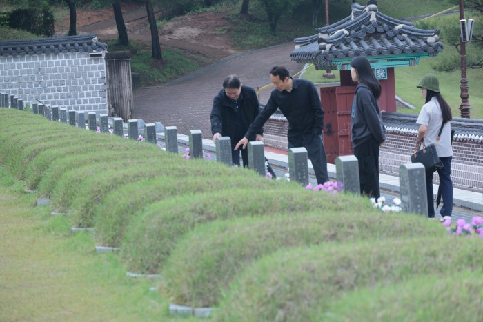 [광주=뉴스핌] 이길동 기자 = 5·18민주화운동 45주기를 하루 앞둔 17일 오전 광주 북구 운정동 국립5·18민주묘지에서 시민들이 묘역을 둘러보고 있다. 2025.05.17 gdlee@newspim.com