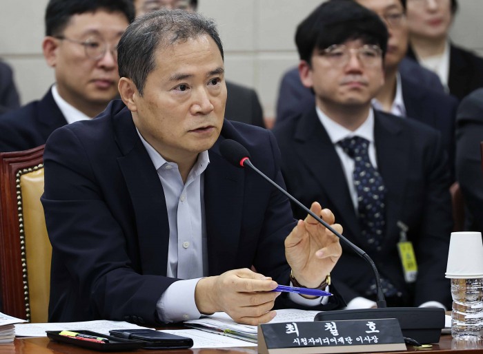 [서울=뉴스핌] 윤창빈 기자 = 최철호 시청자미디어재단 이사장이 14일 오후 서울 여의도 국회에서 열린 과학기술정보방송통신위원회의 방송통신위원회 등에 대한 국정감사에서 의원 질문에 답변을 하고 있다. 2025.10.14 pangbin@newspim.com