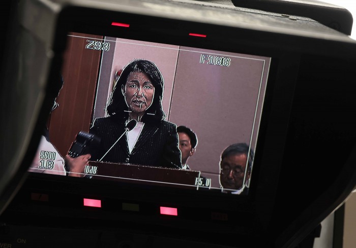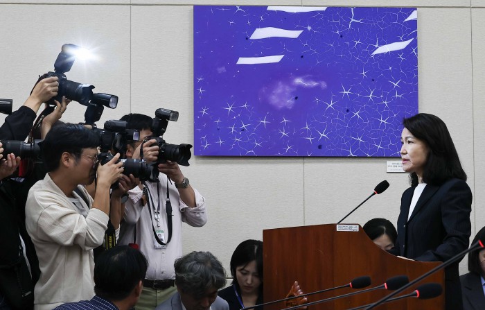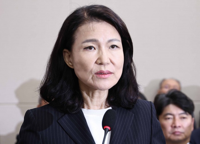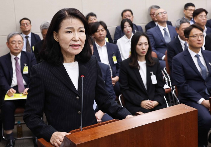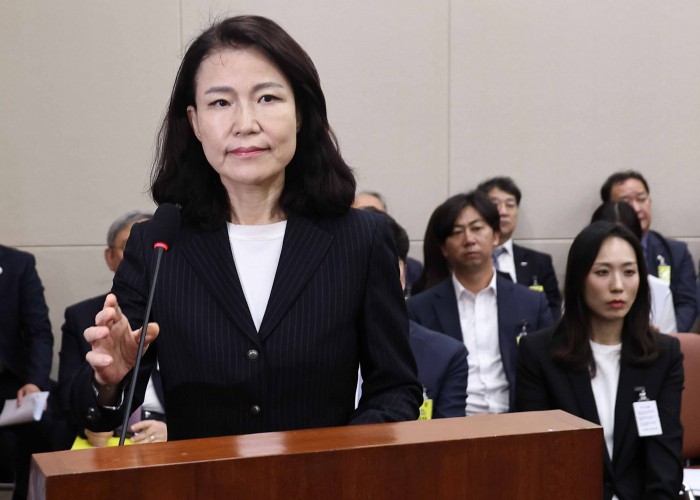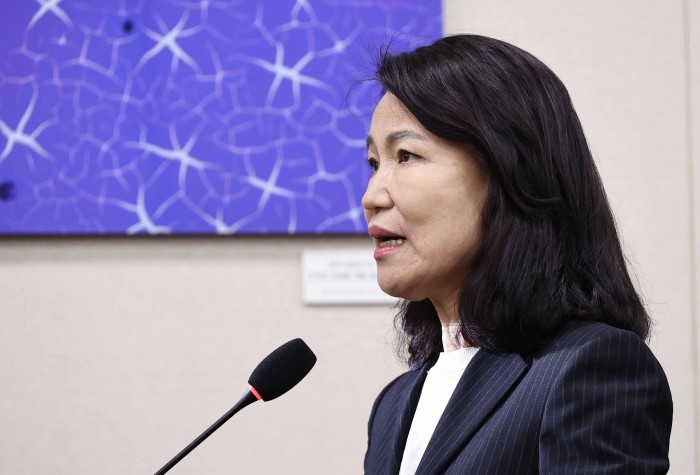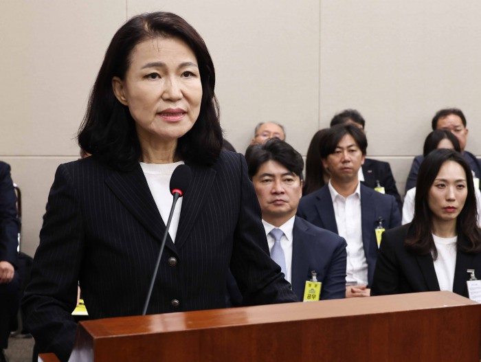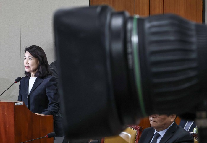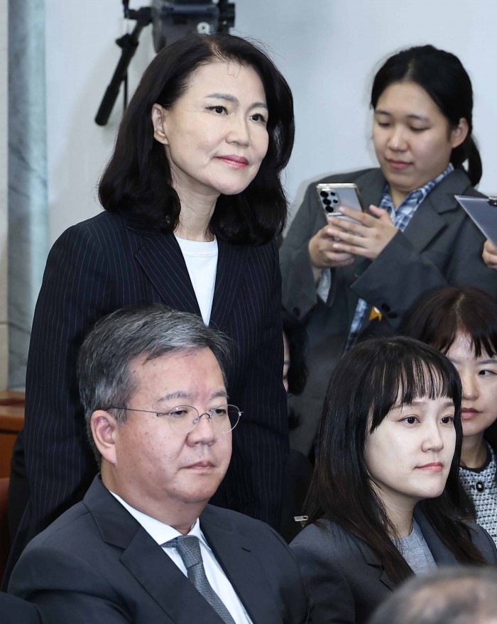 [서울=뉴스핌] 윤창빈 기자 = 이진숙 전 방송통신위원장이 14일 오후 서울 여의도 국회에서 열린 과학기술정보방송통신위원회의 방송통신위원회 등에 대한 국정감사에서 답변을 위해 단상으로 향하고 있다. 2025.10.14 pangbin@newspim.com