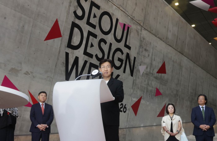 [서울=뉴스핌] 양윤모 기자 = 차강희 서울디자인재단 대표이사가 15일 오전 서울 동대문디자인플라자(DDP) 아트홀입구에서 개최된 국내외 디자이너와 기업이 참여하는 디자인 비즈니스 페어인 '서울디자인위크 개막식'에 참석해 경과보고를 하고 있다.
