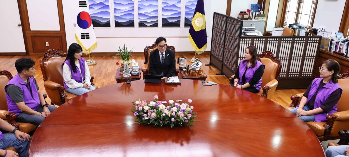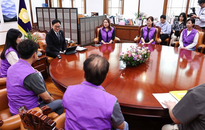 [서울=뉴스핌] 윤창빈 기자 = 우원식 국회의장이 15일 오후 서울 여의도 국회에서 10.29 이태원참사 유가족들과 면담을 하고 있다. 2025.10.15 pangbin@newspim.com