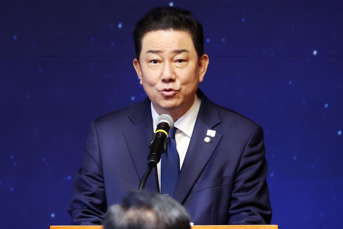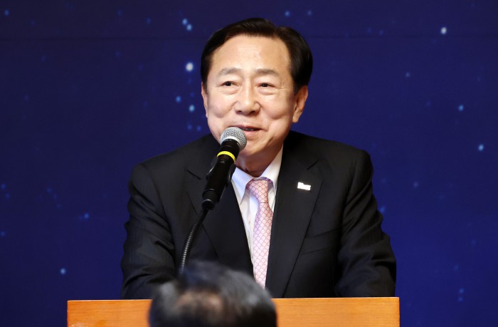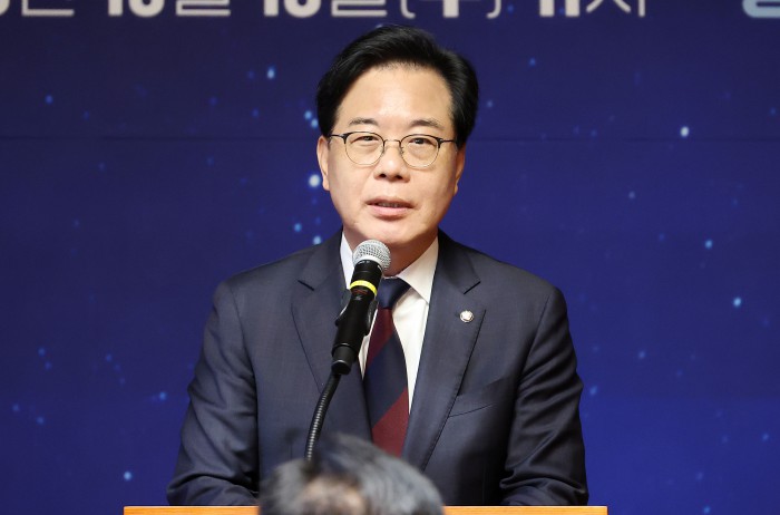 [서울=뉴스핌] 정일구 기자 = 김기문 중소기업중앙회장이 15일 오전 서울 여의도 국회 사랑재에서 열린 국회 사회적 대화 공동 선언식에서 인사말을 하고 있다. 2025.10.15 mironj19@newspim.com