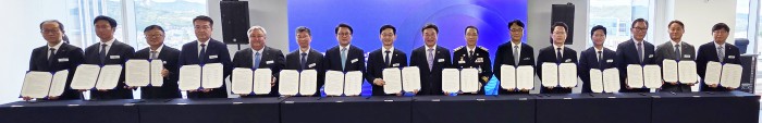 [서울=뉴스핌] 양윤모 기자 = 윤호중 행정안전부장관과 참석자들이 15일 오후 KT 광화문빌딩에서 개최된 범정부 합동 '전기통신금융사기 통합대응단' 개소식에 참석, MOU를 체결후 기념촬영을 하고 있다. 2025.10.15 yym58@newspim.com