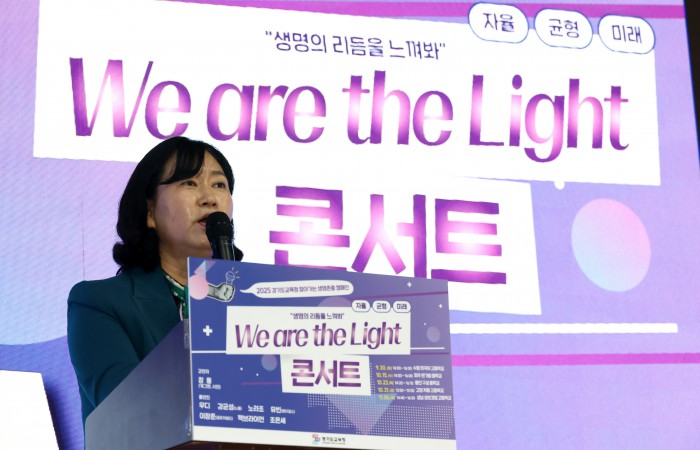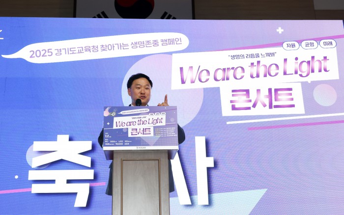 [파주=뉴스핌] 최지환 기자 = 이윤서 파주교육지원청 중등교육지원과장이 15일 오후 경기 파주시 한가람중학교에서 열린 '2025 경기도교육청 찾아가는 생명존중 캠페인'에서 축사를 하고 있다. 2025.10.15 choipix16@newspim.com