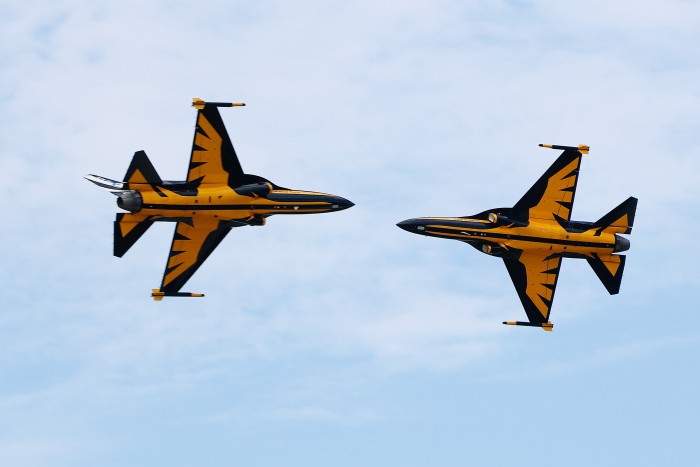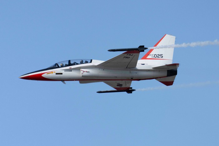 [성남=뉴스핌] 류기찬 기자 = 2025 서울 ADEX 개막일인 17일 오전 경기 성남시 서울공항에서 T-50 골든이글이 비행을 하고 있다. 2025.10.17 ryuchan0925@newspim.com