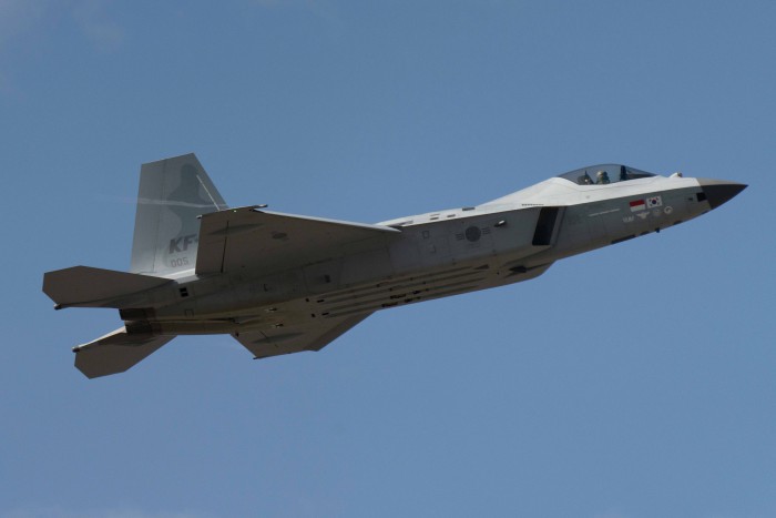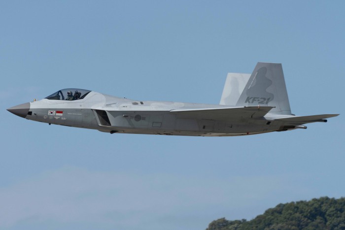 [성남=뉴스핌] 류기찬 기자 = 2025 서울 ADEX 개막일인 17일 오전 경기 성남시 서울공항에서 KF-21 보라매가 비행을 하고 있다. 2025.10.17 ryuchan0925@newspim.com