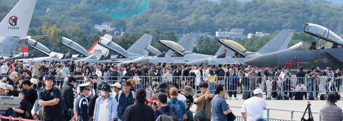 [성남=뉴스핌] 류기찬 기자 = 2025 서울 ADEX 개막일인 17일 오전 경기 성남시 서울공항이 관람객들로 붐비고 있다. 2025.10.17 ryuchan0925@newspim.com