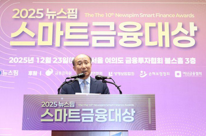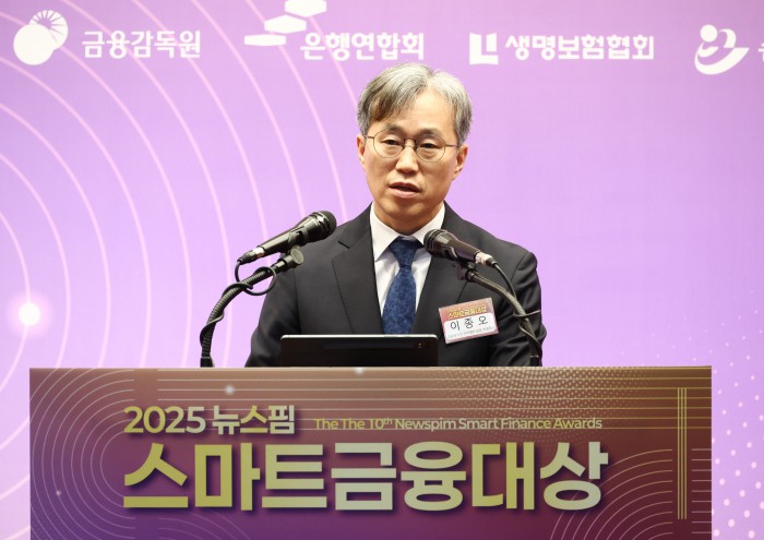 [서울=뉴스핌] 최지환 기자 = 이종오 금융감독원 부원장보가 23일 오전 서울 영등포구 금융투자협회에서 뉴스핌 주최로 열린 2025 뉴스핌 스마트금융대상에서 환영사를 하고 있다. 2025.12.23 choipix16@newspim.com
