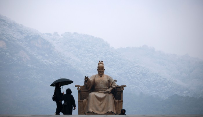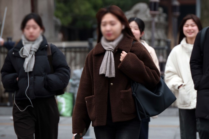 [서울=뉴스핌] 이건주 인턴기자 = 전날 내린 비가 그친 뒤 기온이 급락하며 영하권에 가까운 추위가 찾아온 6일 오전 서울 종로구 광화문 광장에서 여행객들이 몸을 움츠린 채 이동하고 있다. 2026.03.06 kunjoo@newspim.com