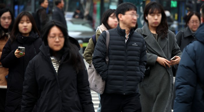 [서울=뉴스핌] 이건주 인턴기자 = 전날 내린 비가 그친 뒤 기온이 급락하며 영하권에 가까운 추위가 찾아온 6일 오전 서울 종로구 광화문 광장에서 두꺼운 옷차림을 한 시민들이 출근길 발걸음을 재촉하고 있다. 2026.03.06 kunjoo@newspim.com