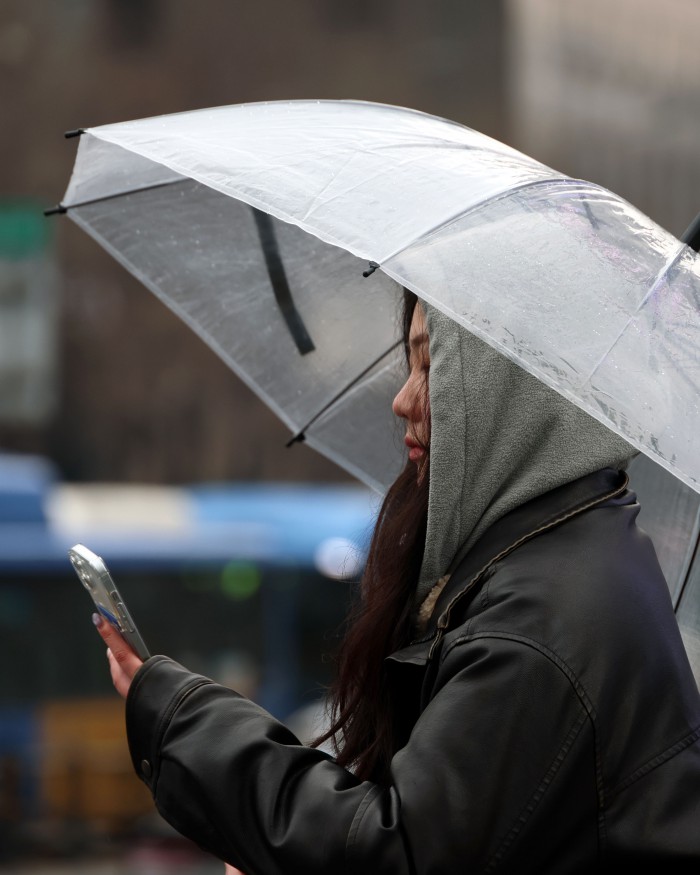 [서울=뉴스핌] 이건주 인턴기자 = 전날 내린 비가 그친 뒤 기온이 급락하며 갑작스러운 눈비가 내리는 6일 오전 서울 종로구 광화문 광장에서 우산을 쓴 시민이 신호를 기다리고 있다. 2026.03.06 kunjoo@newspim.com