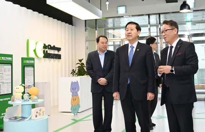 [서울=뉴스핌]구윤철 부총리 겸 재정경제부 장관이 6일 청년 재도전 창업 관련 현장방문으로 대전스타트업파크를 방문,관계자로부터 재도전 창업지원 추진현황 및 성공사례 설명을 듣고 있다.[사진=재정경제부] 2026.03.06 photo@newspim.com